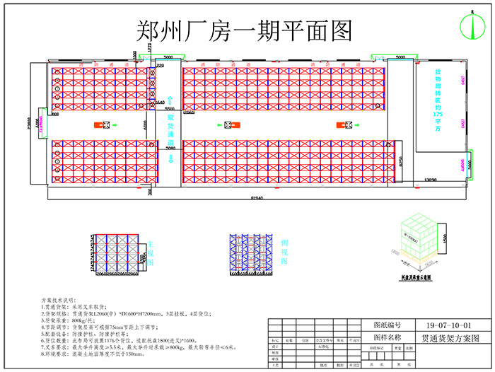 鄭州汽車行業(yè)倉(cāng)庫(kù)貫通貨架方案布局圖